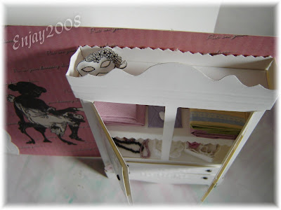 This is my winning entry for the Joanna Sheen category of the competiton. I used the wardrobe from Helping Hands templates and the image,backing paper and lace was from Joanna Sheens Dancing with Shadows cd.And for the Hot off the press category i came 3rd,this is my entry,i used Helping hands templates lantern template and hot off the press paper piazza 6x6 friendship papers for inside the lantern and for the flowers which i punched. The lovely lady is from Crafty individual.